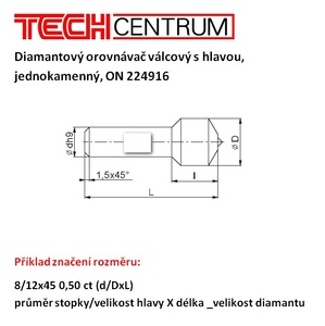 Diamantový orovnávač válcový s hlavou 8/12x45 1,50ct 10-32 ON224916 nebroušený